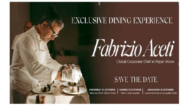 Véritable maestro des saveurs, Fabrizio Aceti incarne l’âme et le savoir-faire de la haute cuisine italienne. Formateur de toutes les brigades culinaires des «Paper Moon» de Doha (Qatar) à Brodrum (Turquie), en passant par Londres et Taghazout, il se tiendra lui-même lors de ses trois soirées inédites au Fairmont Taghazout Bay aux côtés des convives pour présenter chaque création, partager ses secrets, et faire vibrer chaque plat au rythme des terroirs et produits d’exception dont il s’inspire.