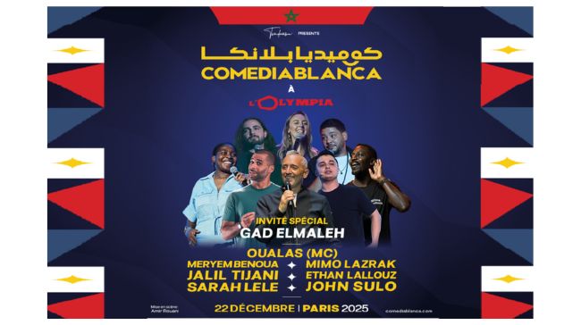 Fort de ce succès, Comediablanca poursuit son ascension et part à la conquête des scènes internationales. Le 22 décembre 2025, la scène mythique de l’Olympia de Paris marquera le lancement de cette tournée inédite, avec la participation exceptionnelle de Gad Elmaleh, enfant de Casablanca et artiste de renommée mondiale, qui rejoint le line-up pour accompagner cette aventure.