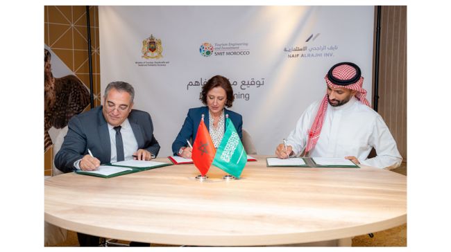 En marge de la 26ème session de l’Assemblée générale d’ONU Tourisme à Riyad, Fatim-Zahra Ammor, Ministre du Tourisme, de l’Artisanat et de l’Économie Sociale et Solidaire, et Imad Barrakad, Directeur Général de la Société Marocaine d’Ingénierie Touristique (SMIT), ont procédé à la signature d’un mémorandum d’entente avec le groupe saoudien Naif Al-Rajhi Investment, portant sur le développement de la Cité de la Méditerranée à Tanger, pour un investissement d’environ 250 millions de DH.