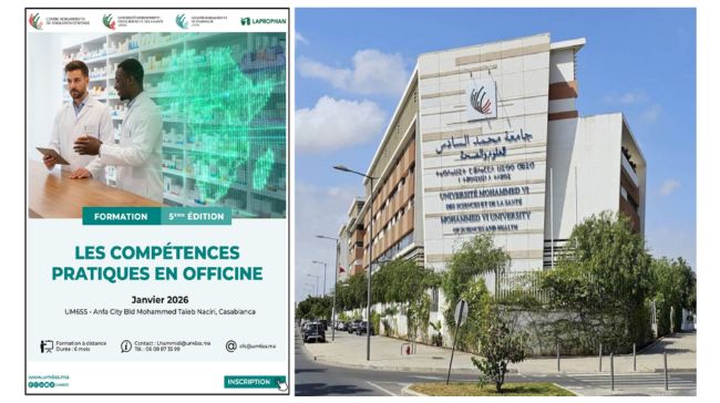 À travers ce programme, la Faculté Mohammed VI de Pharmacie et les laboratoires Laprophan réaffirment leur engagement en faveur de la formation continue, de la montée en compétences des acteurs de l’officine et de l’amélioration de la qualité des services pharmaceutiques, tant au niveau national qu’international.
