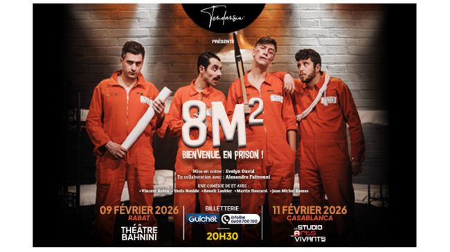 Après avoir séduit plus de 18.000 spectateurs, la comédie à succès «8M2» s’invite enfin au Maroc. Produite par Tendansia, la pièce sera jouée le 9 février à Rabat et le 11 février à Casablanca, promettant au public une immersion aussi hilarante qu’inattendue dans l’univers clos d’une cellule de prison.