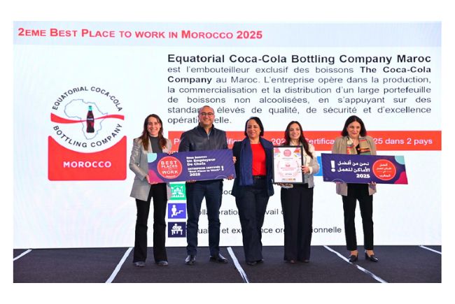 Equatorial Coca-Cola Bottling Company Maroc (ECCBC Maroc), acteur majeur du secteur des boissons au Maroc, vient de décrocher la certification internationale «Best Place to Work 2025», se classant 2ème au niveau national et 3ème au niveau africain, confirmant ainsi son positionnement parmi les employeurs les plus attractifs et les plus engagés du continent.