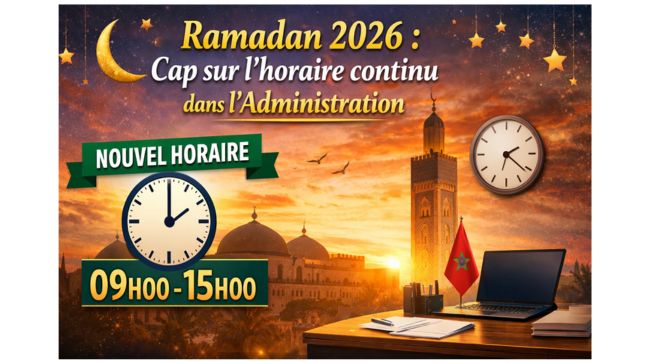 Les horaires de travail dans les administrations, les établissements publics et les collectivités territoriales connaîtront un changement durant le mois sacré du Ramadan avec l’adoption de l’horaire continu de 9h à 15h, du lundi au vendredi.