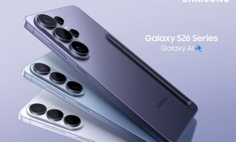 Les Galaxy S26 Ultra, S26+ et S26 seront disponibles à partir du 25 février. La série Galaxy S26 adopte un langage de design unifié sur l’ensemble des modèles, avec des coloris communs comprenant Cobalt Violet, White, Black et Sky Blue.