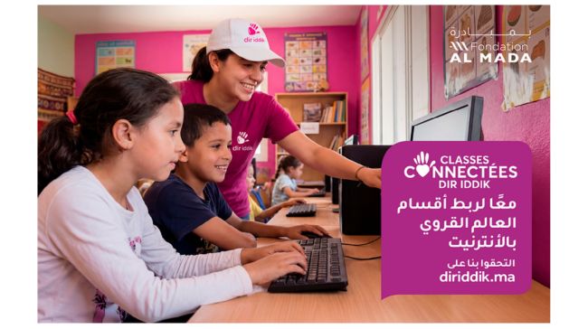 À l’initiative de la Fondation Al Mada en partenariat avec Inwi, Managem, Nareva et Injaz Al Maghrib, le projet «Classes Connectées Dir Iddik» mené, en collaboration avec le Ministère de l’Éducation Nationale, du Préscolaire et des Sports, vise à généraliser l’accès au numérique dans les écoles primaires rurales en équipant des salles multimédias connectées. Depuis son lancement en 2021, le programme a permis d’équiper plus de 110 écoles et de bénéficier à plus de 34.000 élèves à travers le Royaume.