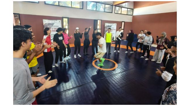 En complément aux ateliers pratiques, un module consacré à la culture Hip Hop a été animé par Frieda Frost, chorégraphe, juge olympique et vice-championne d’Allemagne de Breaking, offrant aux élèves une immersion dans les valeurs fondatrices de ce mouvement culturel.