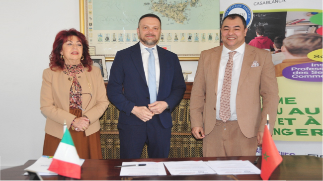 Dans une démarche visant à renforcer les compétences linguistiques des élèves et à encourager leur ouverture à l’international, une convention de partenariat stratégique a été signée le 27 mai dernier entre le réseau British Workshop au Maroc et l’École Italienne de Casablanca Enrico Mattei. L’accord a été paraphé en présence de Francesco Capecchi, Consul Général d’Italie à Casablanca, entre Marina Sganga, Coordinatrice Éducation et représentante de l’École Italienne de Casablanca, et Thami Benboujida, représentant et fondateur du réseau British Workshop au Maroc.